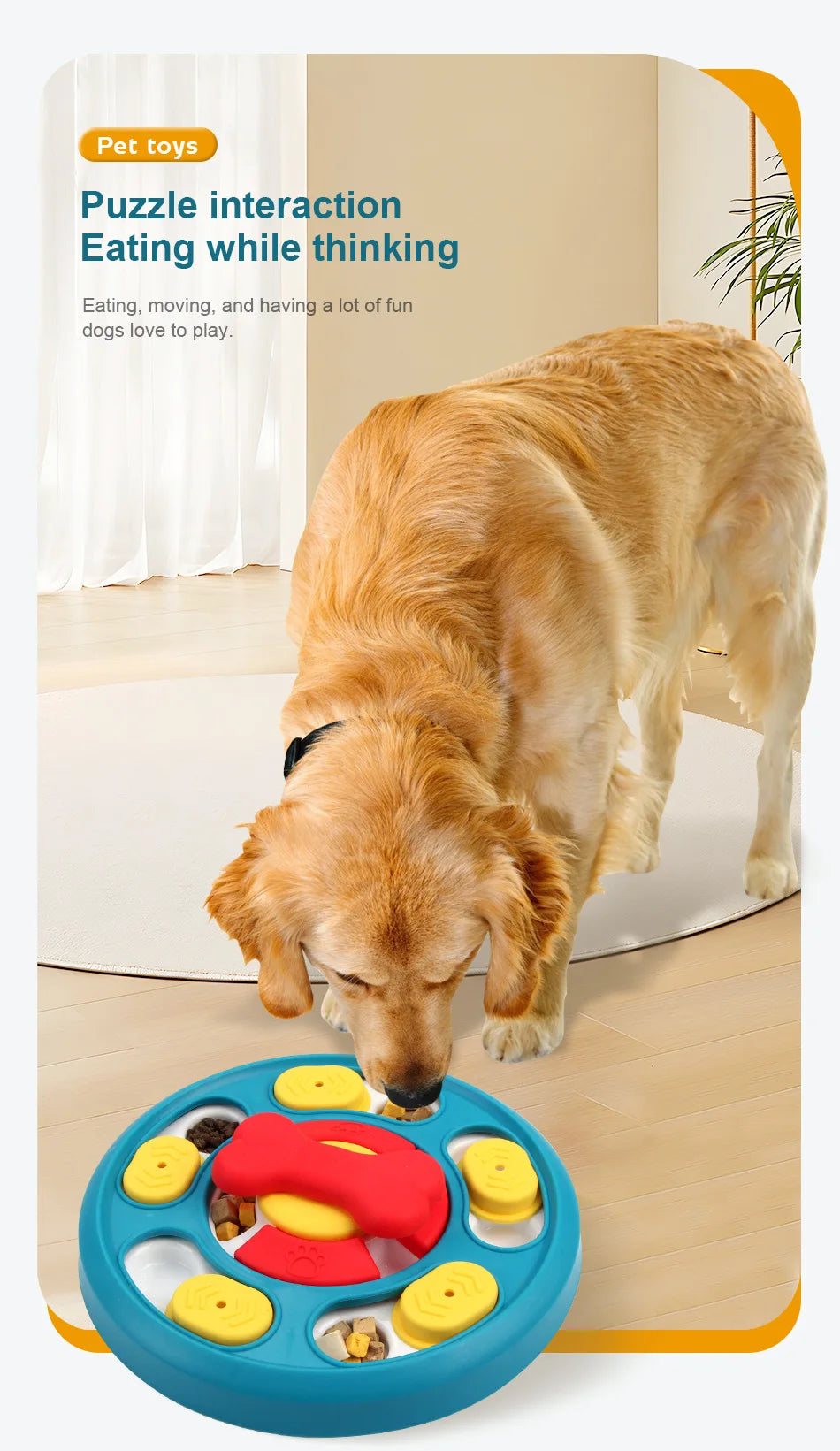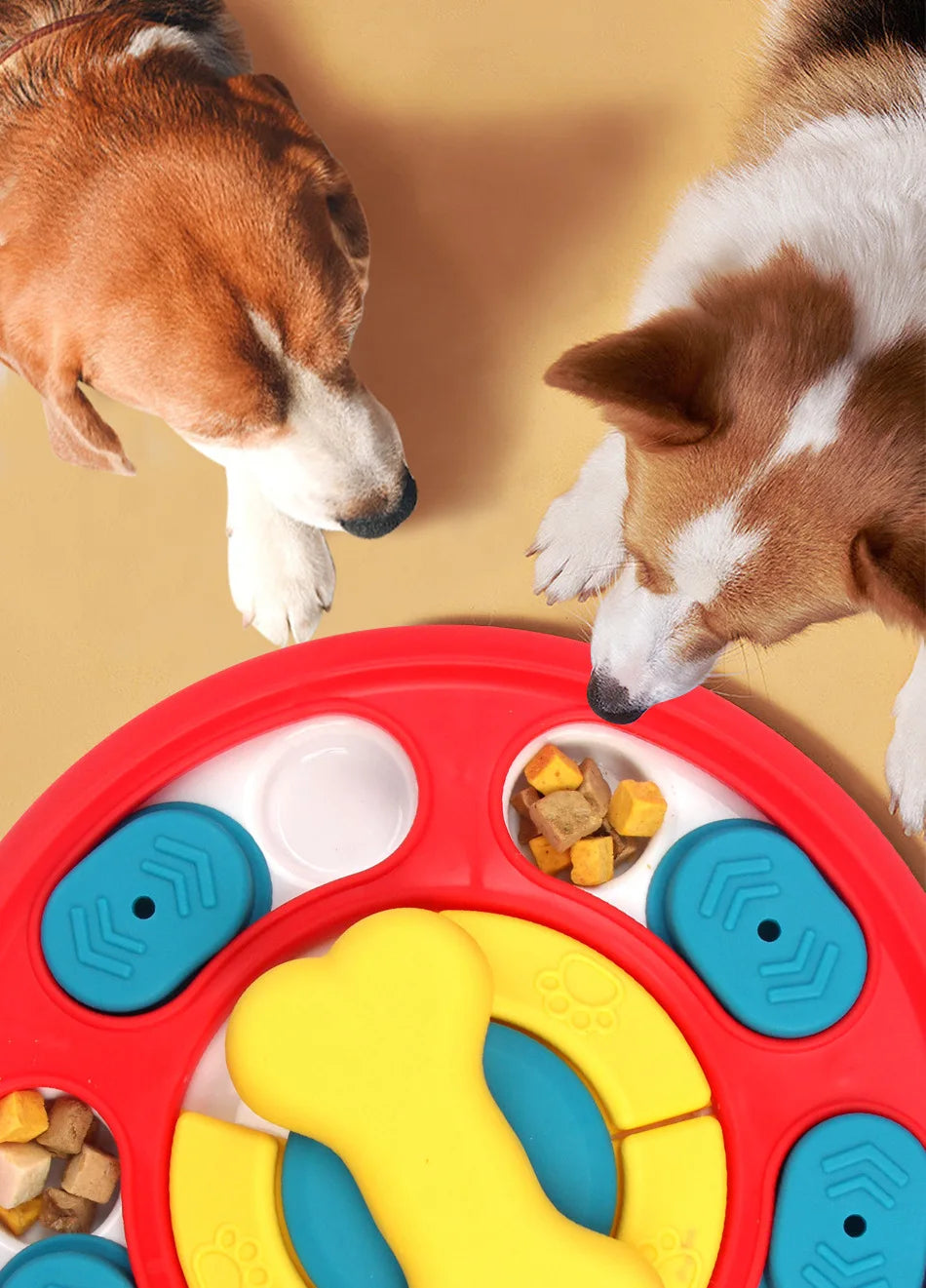 - Un Sencillo Puzzle Giratorio: La "rueda de comida" central gira a medida que tu perro lame, animándolo a interactuar y haciendo la experiencia más duradera y estimulante.